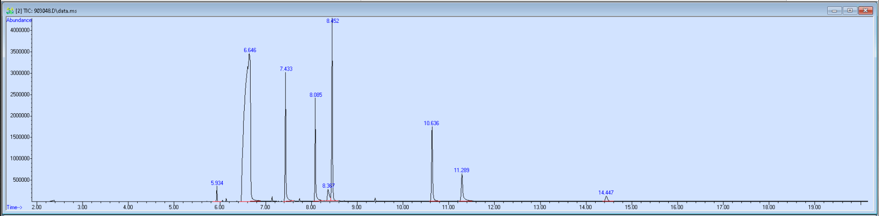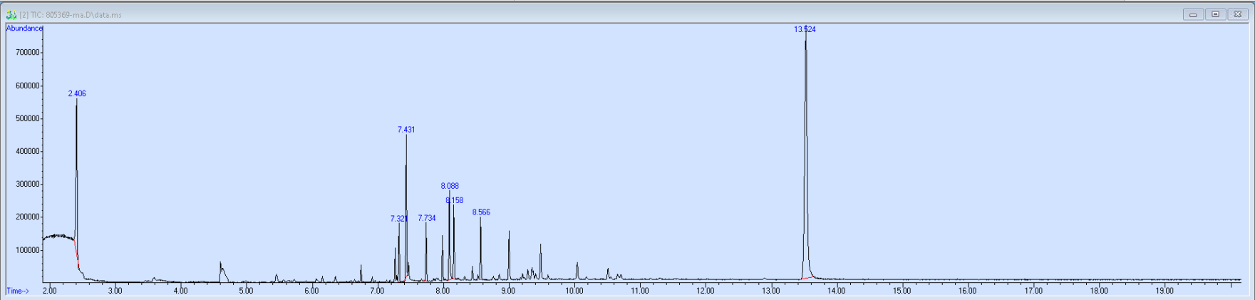 What the peak numbers mean. The peak numbers are provided for transparency and completeness. The peak number is when (in minutes) the GCMS machine to identify the substance. The number itself isn’t all that important by itself - think of it like a label. If advanced methods (see below) were used, the peak numbers may not match up exactly. And some smaller peaks may be artifacts that we investigated and ruled out.