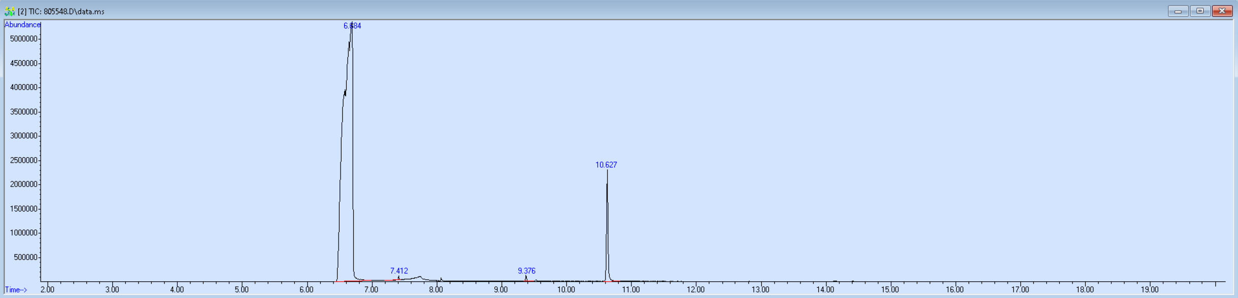 Reading the graph. The "relative abundance" on the vertical axis is a rough relative estimate of how much is present. It is not quantification. The time (min) on the horizontal axis means the time at which each of the substances was detected. But you can also look at the overall pattern to get a sense of what's common in your area. Also, similar substances can sometimes clump together into one peak, so we may run more tests to get separation. When we list the substances above, we've taken a whole set of lab tests into account, and it's not just looking at results from one graph.