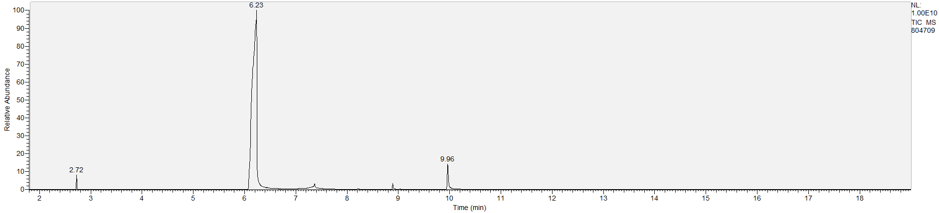 Reading the graph. The "relative abundance" on the vertical axis is a rough relative estimate of how much is present. It is not quantification. The time (min) on the horizontal axis means the time at which each of the substances was detected. But you can also look at the overall pattern to get a sense of what's common in your area. Also, similar substances can sometimes clump together into one peak, so we may run more tests to get separation. When we list the substances above, we've taken a whole set of lab tests into account, and it's not just looking at results from one graph.