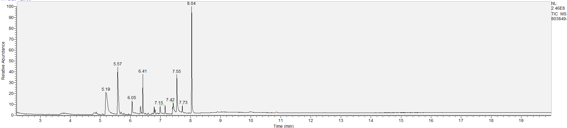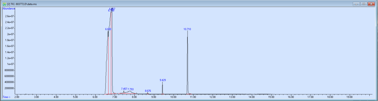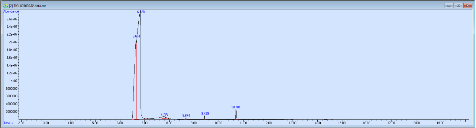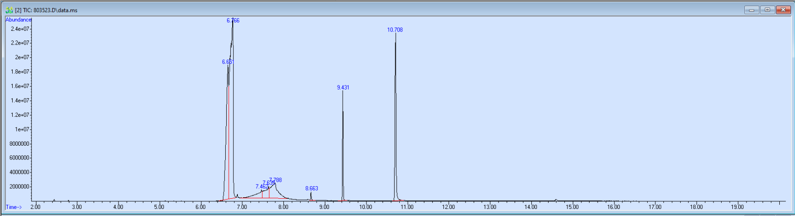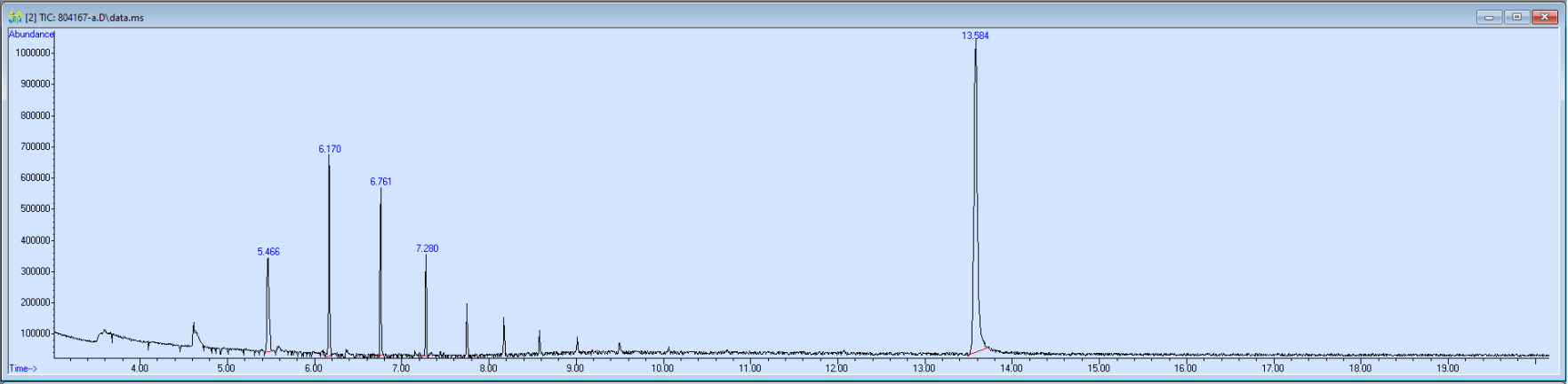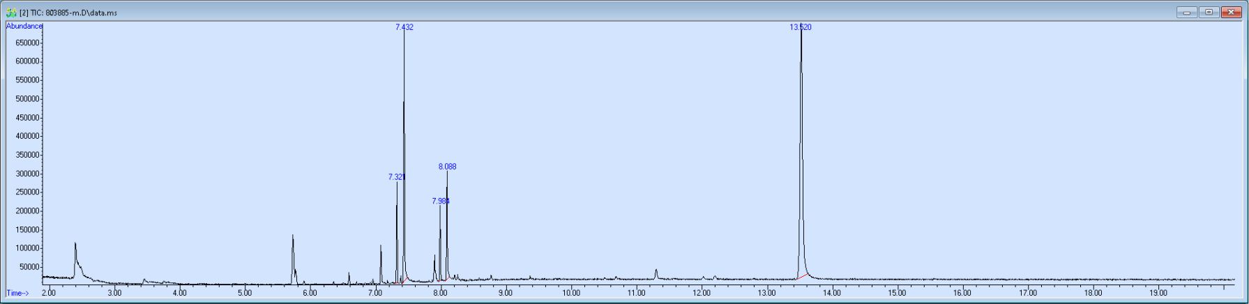 What the peak numbers mean. The peak numbers are provided for transparency and completeness. The peak number is when (in minutes) the GCMS machine to identify the substance. The number itself isn’t all that important by itself - think of it like a label. If advanced methods (see below) were used, the peak numbers may not match up exactly. And some smaller peaks may be artifacts that we investigated and ruled out.
