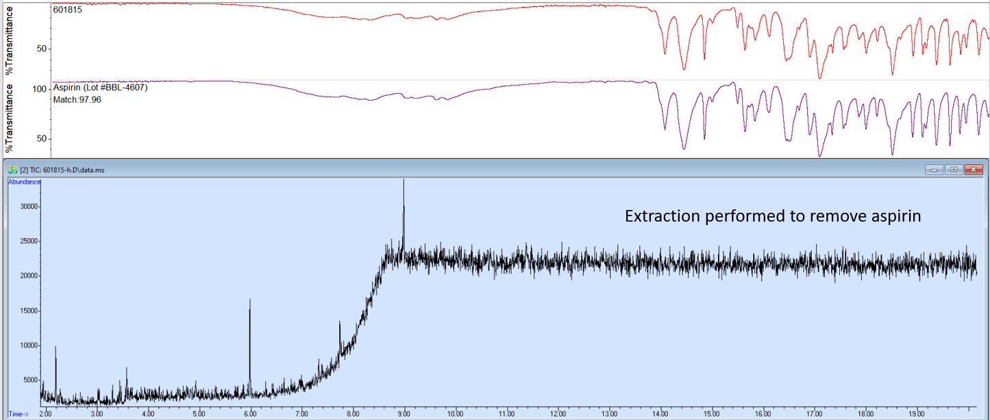 What we can and can't tell. The GCMS method is most reliable for psychoactive substances. For cuts and fillers (like sugars) we may need to use other tools. If you see "FTIR" or "Derivitized GCMS" in the Methods description above, we found additional substances when we used one of these advanced techniques. The graph above doesn’t include the peaks from these advanced methods right now because the graphs are too complicated.