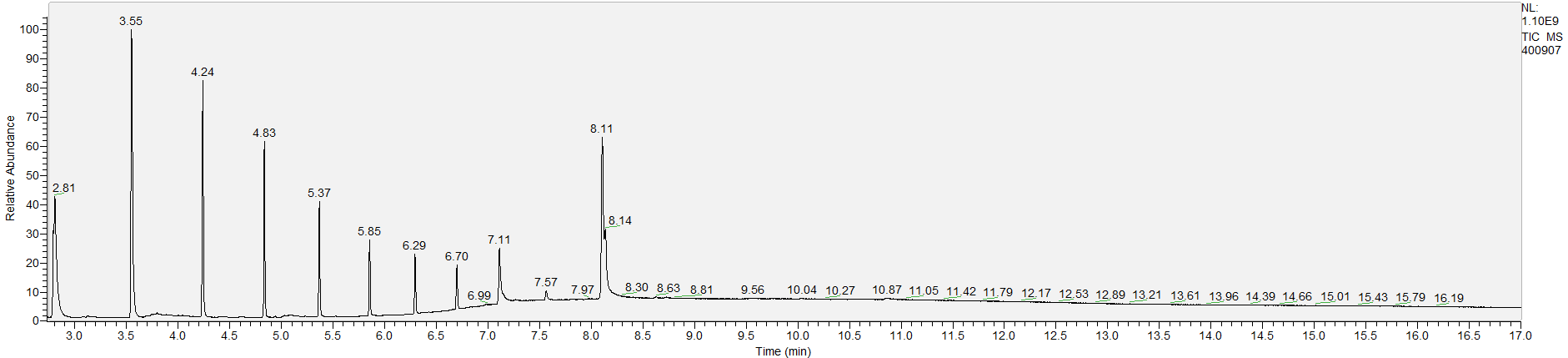 What the peak numbers mean. The peak numbers are provided for transparency and completeness. The peak number is when (in minutes) the GCMS machine to identify the substance. The number itself isn’t all that important by itself - think of it like a label. If advanced methods (see below) were used, the peak numbers may not match up exactly. And some smaller peaks may be artifacts that we investigated and ruled out.