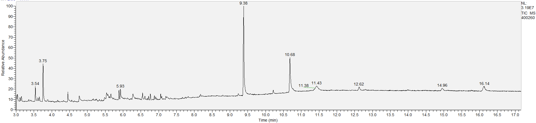 What the peak numbers mean. The peak numbers are provided for transparency and completeness. The peak number is when (in minutes) the GCMS machine to identify the substance. The number itself isn’t all that important by itself - think of it like a label. If advanced methods (see below) were used, the peak numbers may not match up exactly. And some smaller peaks may be artifacts that we investigated and ruled out.