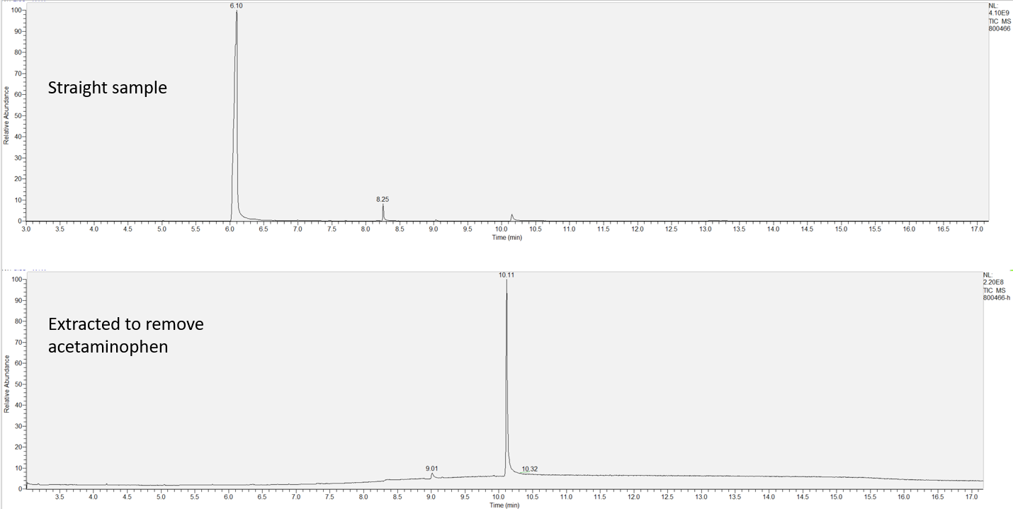 The GCMS method is really sensitive. We can pick up on trace amounts, and sometimes those can be cross-contamination. They may not be relevant for your context, but know that’s what we found in there. That's why we ask you to wear gloves and use the paper cloth when collecting the sample. The substances that drive the high are in the major peaks. Sometimes there can be side effects from the smaller peaks as well.