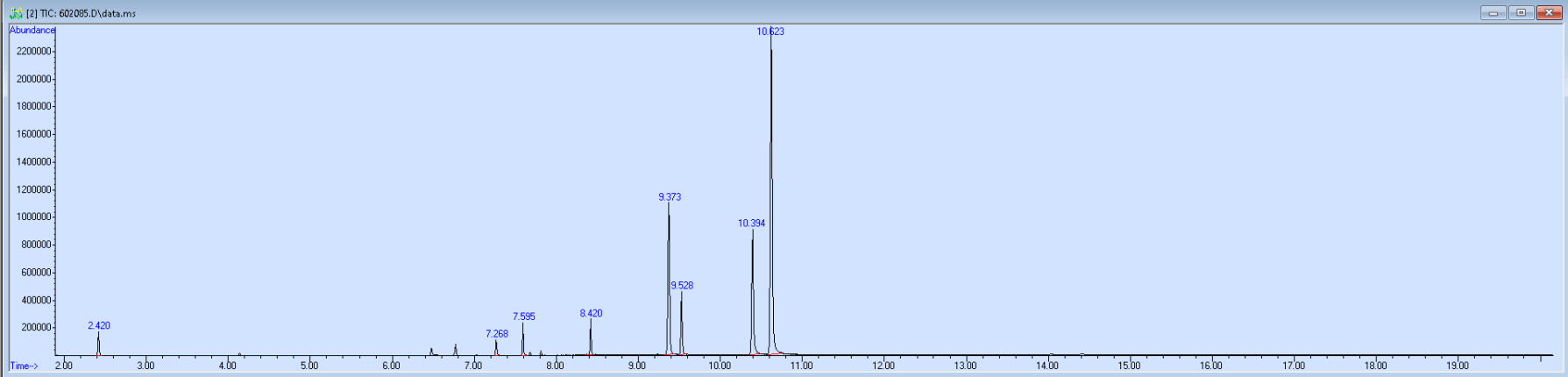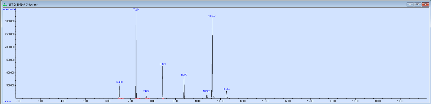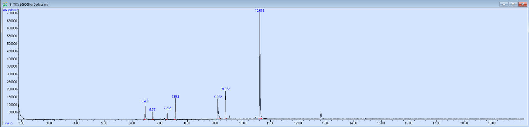 What the peak numbers mean. The peak numbers are provided for transparency and completeness. The peak number is when (in minutes) the GCMS machine to identify the substance. The number itself isn’t all that important by itself - think of it like a label. If advanced methods (see below) were used, the peak numbers may not match up exactly. And some smaller peaks may be artifacts that we investigated and ruled out.