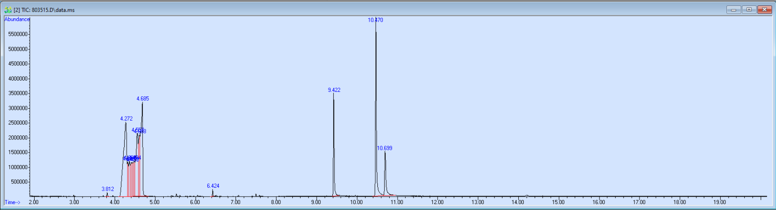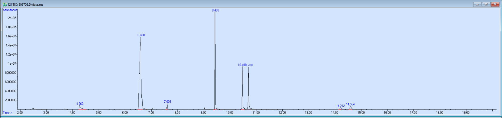 What the peak numbers mean. The peak numbers are provided for transparency and completeness. The peak number is when (in minutes) the GCMS machine to identify the substance. The number itself isn’t all that important by itself - think of it like a label. If advanced methods (see below) were used, the peak numbers may not match up exactly. And some smaller peaks may be artifacts that we investigated and ruled out.