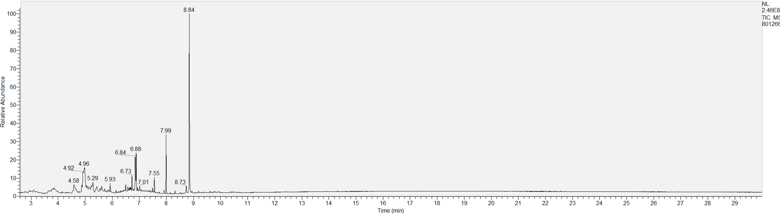 What the peak numbers mean. The peak numbers are provided for transparency and completeness. The peak number is when (in minutes) the GCMS machine to identify the substance. The number itself isn’t all that important by itself - think of it like a label. If advanced methods (see below) were used, the peak numbers may not match up exactly. And some smaller peaks may be artifacts that we investigated and ruled out.