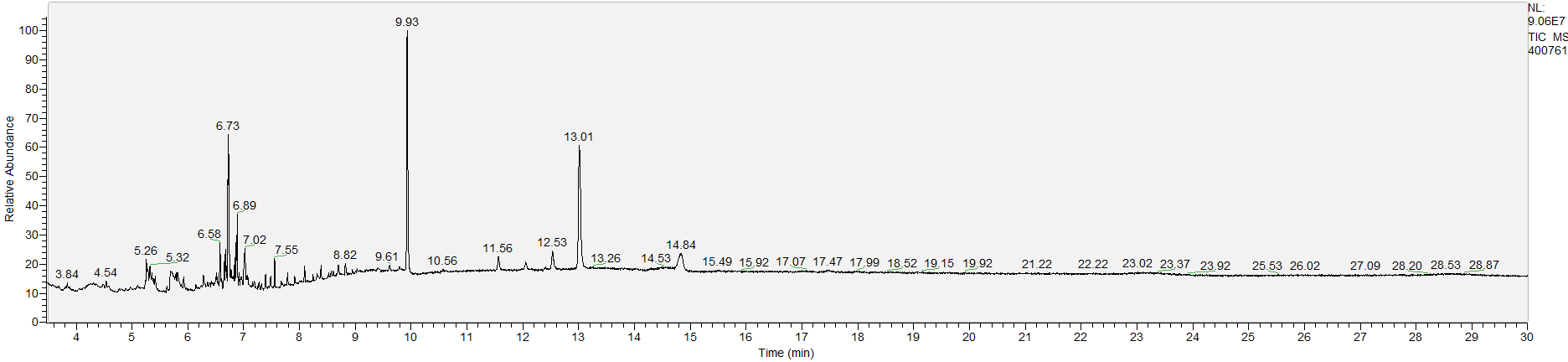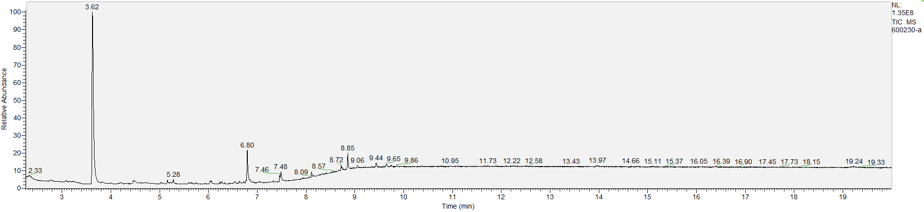 What the peak numbers mean. The peak numbers are provided for transparency and completeness. The peak number is when (in minutes) the GCMS machine to identify the substance. The number itself isn’t all that important by itself - think of it like a label. If advanced methods (see below) were used, the peak numbers may not match up exactly. And some smaller peaks may be artifacts that we investigated and ruled out.