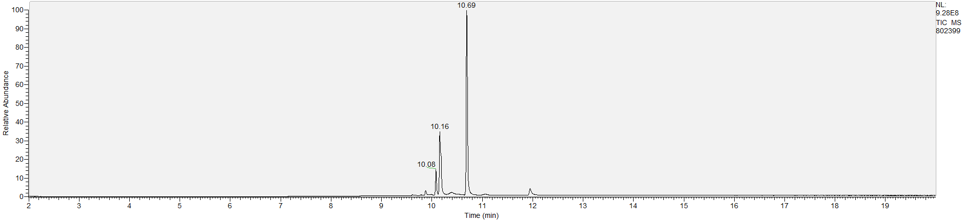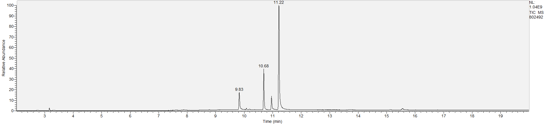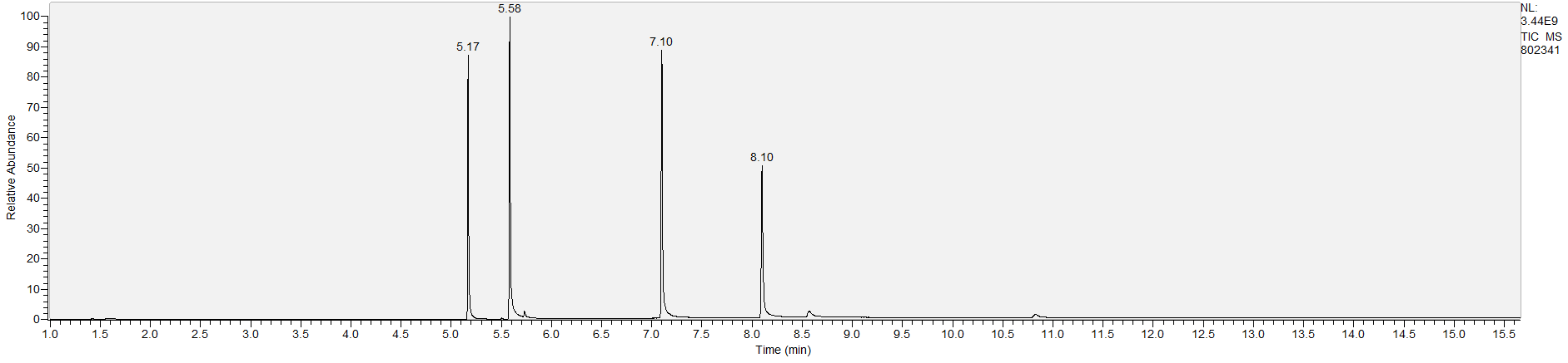 Reading the graph. The "relative abundance" on the vertical axis is a rough relative estimate of how much is present. It is not quantification. The time (min) on the horizontal axis means the time at which each of the substances was detected. But you can also look at the overall pattern to get a sense of what's common in your area. Also, similar substances can sometimes clump together into one peak, so we may run more tests to get separation. When we list the substances above, we've taken a whole set of lab tests into account, and it's not just looking at results from one graph.